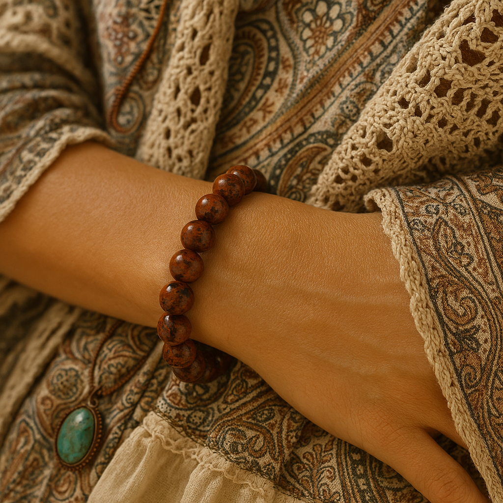 Discover the timeless beauty and energy of Mahogany Obsidian with this handmade 8mm bead bracelet. Known as a stone of grounding and protection, Mahogany Obsidian combines deep black with warm mahogany-brown swirls, reflecting both strength and stability.